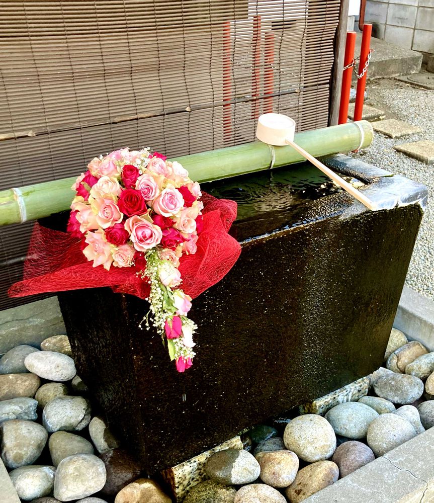 花手水舎のアレンジが変わってました🌹