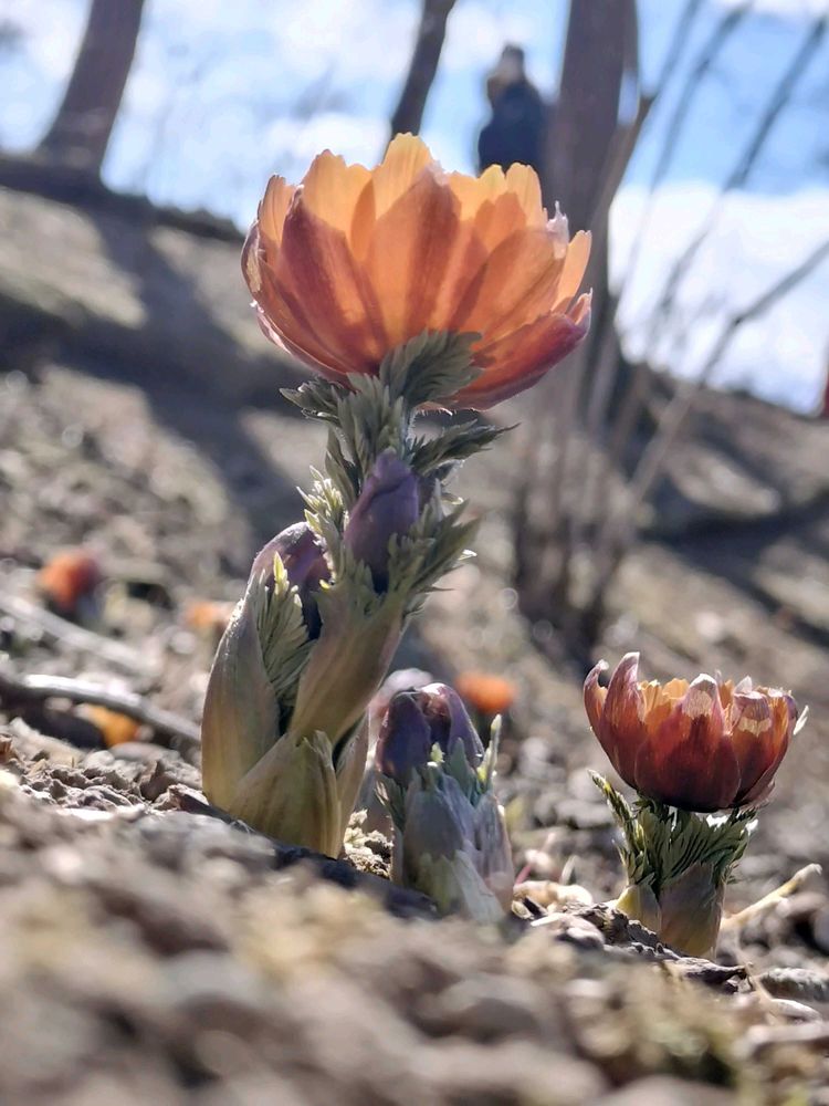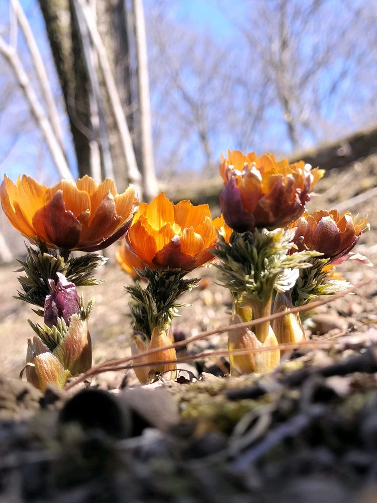 オレンジ色の福寿草、現物は見たことがないので見られて嬉しいです🧡