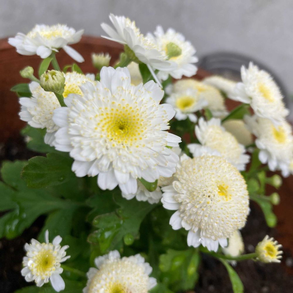 鉢上げ用の鉢を買いに行ったら、マトリカリアがとても可愛くて一緒にお買い上げ。株一面に溢れるほど咲くらしいので、元気に育ってほしです😊