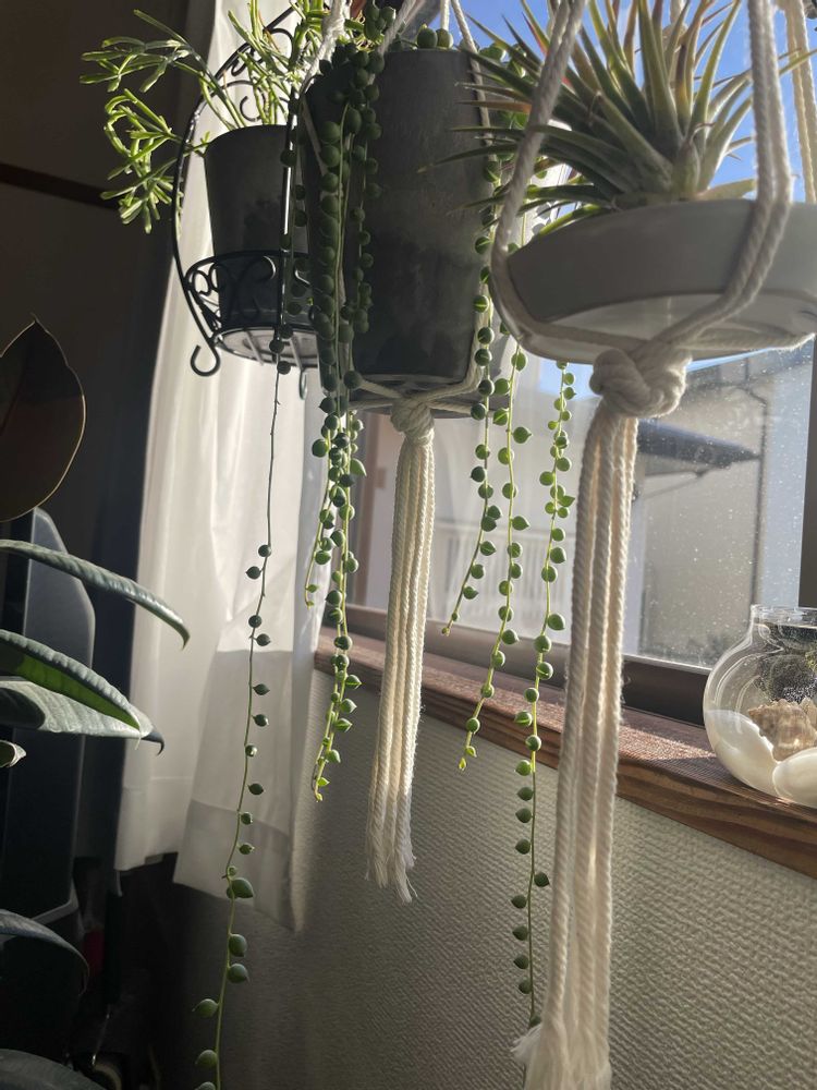 つぶつぶまたカーテンみたいに伸びてきたグリーンネックレス🌿