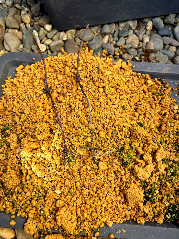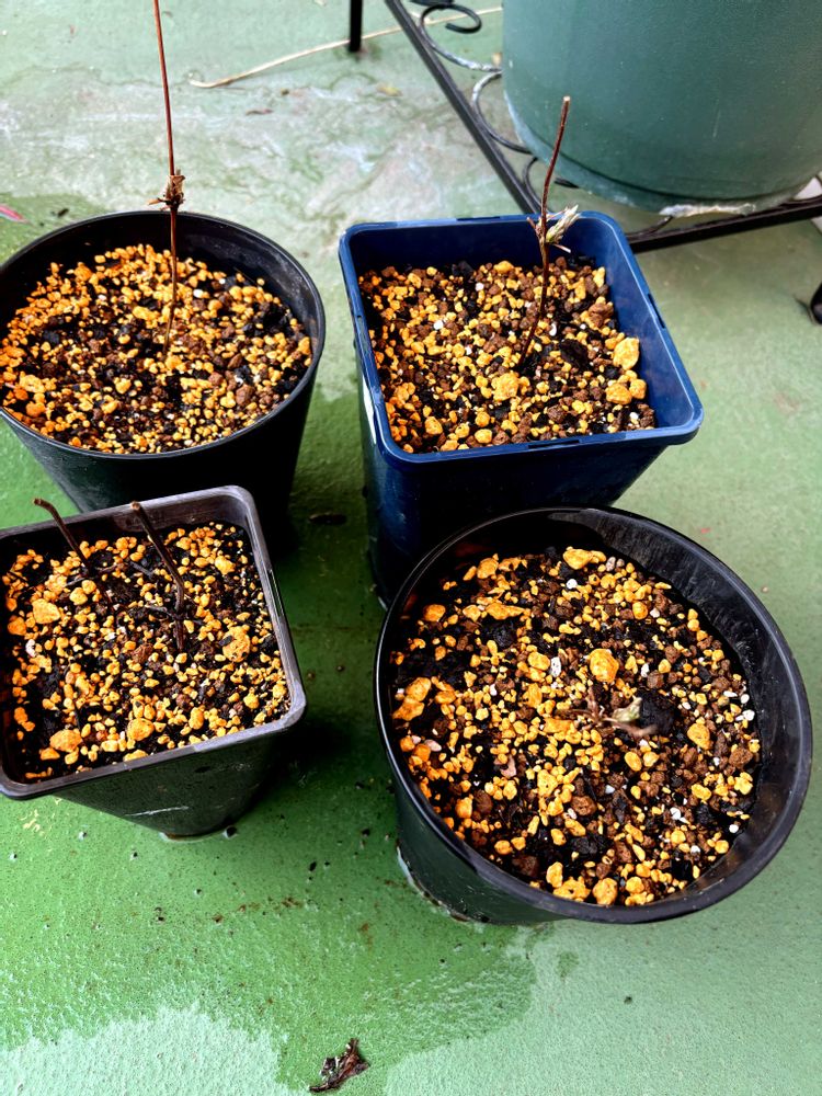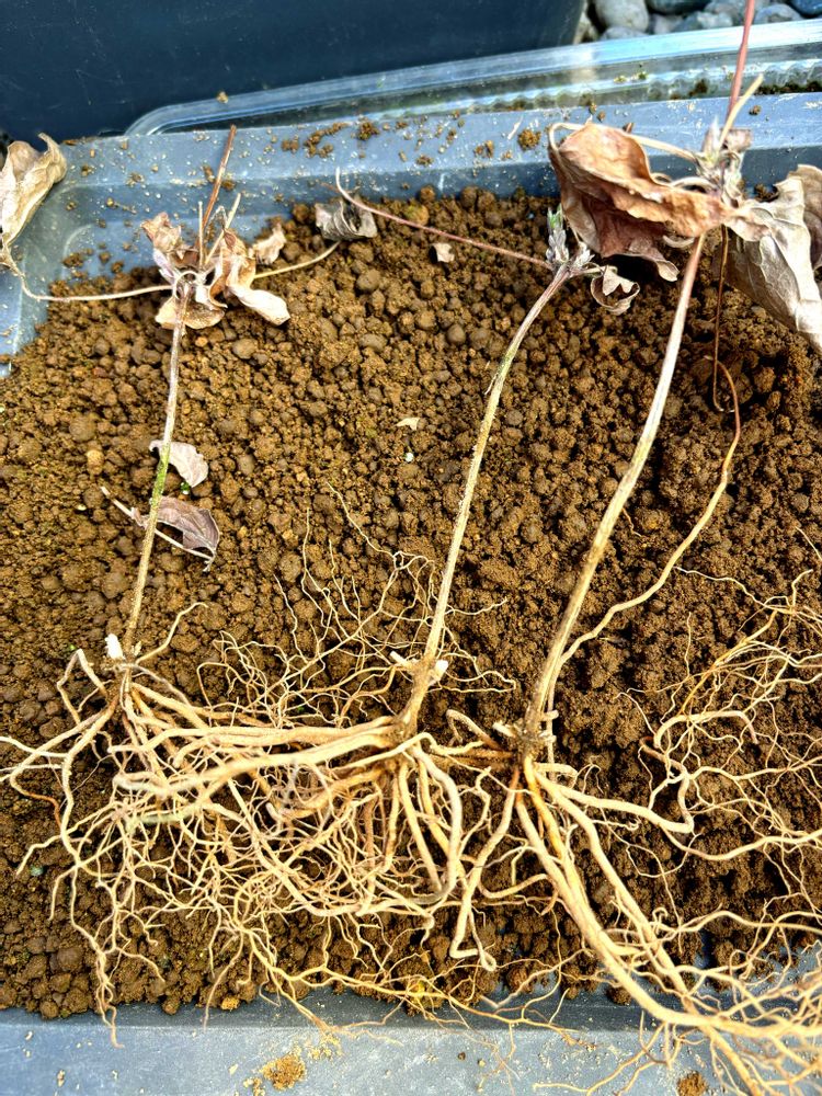 土の配合は赤玉4鹿沼土3腐葉土3適当に小さな軽石を混ぜて2月中旬迄に! よし!今日は暖かいから植えてみよー ハテハテ根っこは生きてるのか?