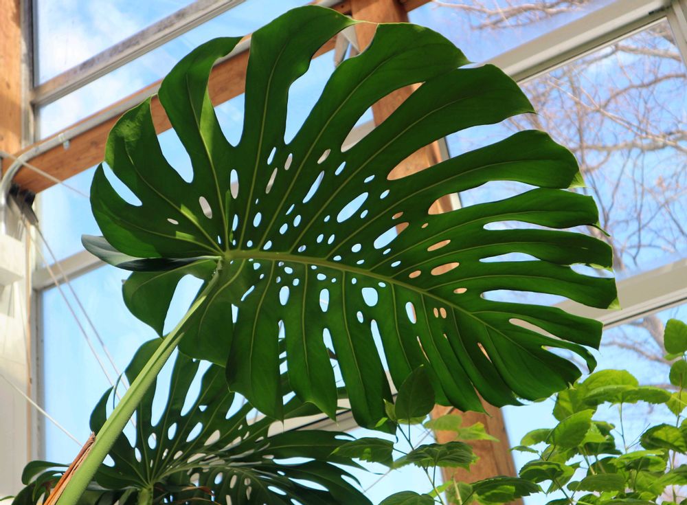 暖かいとモンステラって、凄く大きな葉になるんだね。ハワイに行った時も、でっかいモンステラを見たけど、温室もざっと2mくらいかな。