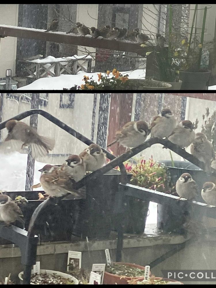 ここ数日何故かスズメが群がって来ます・・・なんでだろう🤔と思っていたら