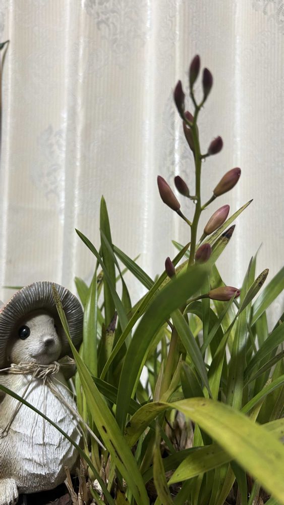 ① シンビジュゥムの蕾が膨らんで来ました。昨年植え替えたので一株だけの開花ですが〜楽しみです♪