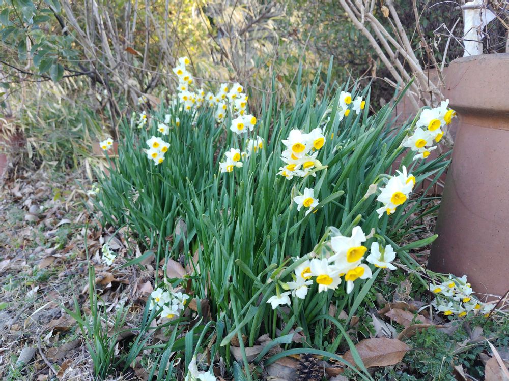 温室近くの水仙