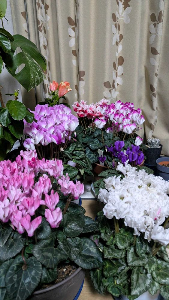 凄いですね〜 沢山咲かせていて 私は寂しいシクラメン お花無し やっと枯れなくなり もやしの様な葉っぱが出始めてくれています〜 それだけでも 良かった〜