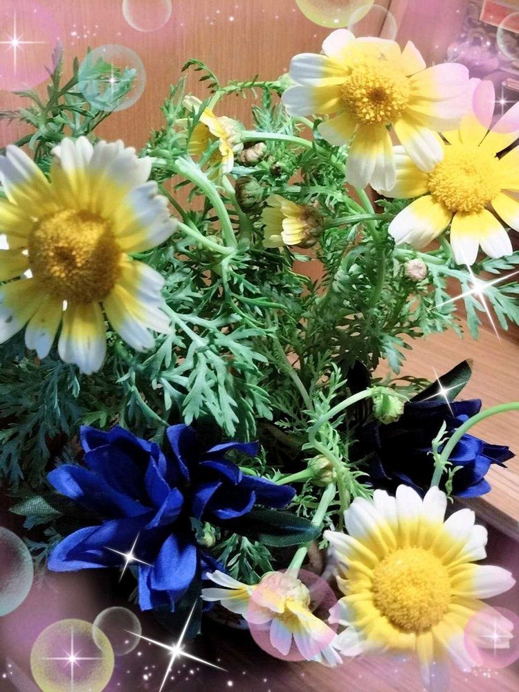 産直にて〜切り花のシュンギクが売って居た〜なので~即買い〜因みにシュンギクの水挿し栽培中〜だいぶ根が出て来ました~鉢植えにした方が良いかな~部屋の中の方が良いかな~思案中2本挿してるから〜外と中に置いて実験して見るかな~👍✌️👌😉