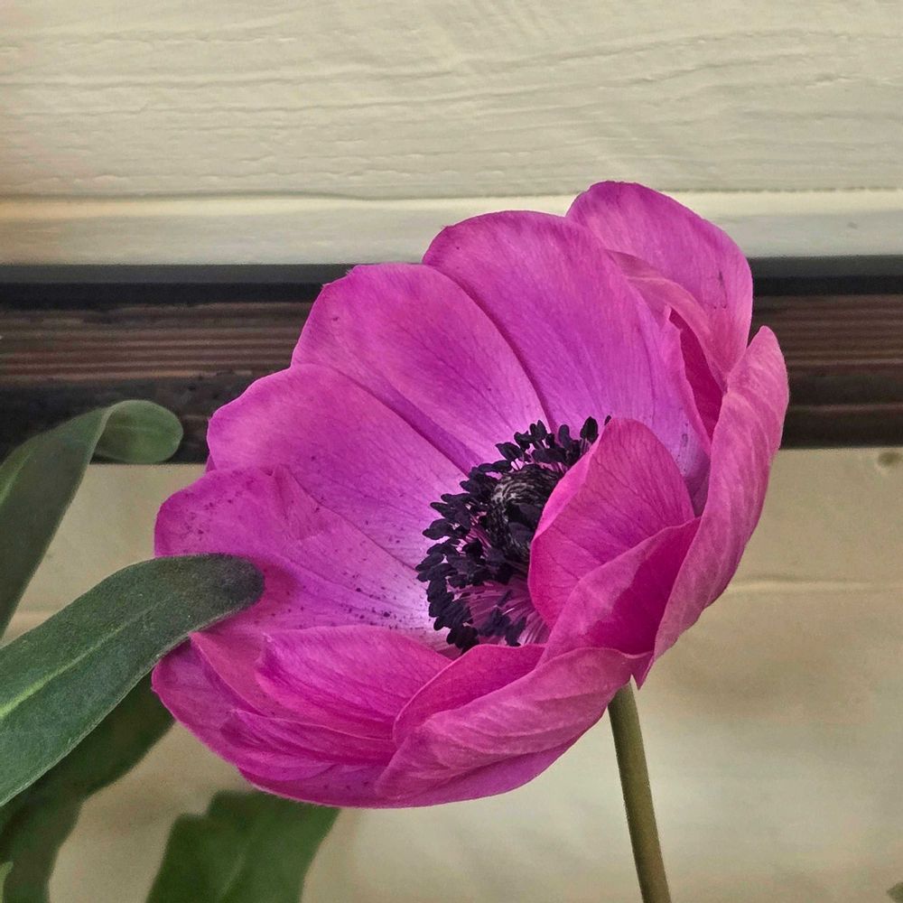 私のアネモネポルト🟦は定植作業中茎が折れたので、キッチン出窓に飾りました。