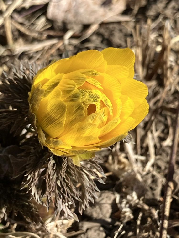 太陽をいっぱい浴びて、全開したフクジュソウは元気が貰えます‼️