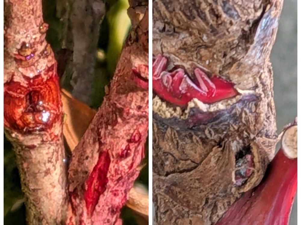 昨日、水やりしててナンテンの幹が、真っ赤なのに気づき、明日投稿しようと思ってたら、ヒイラギも、赤い。
