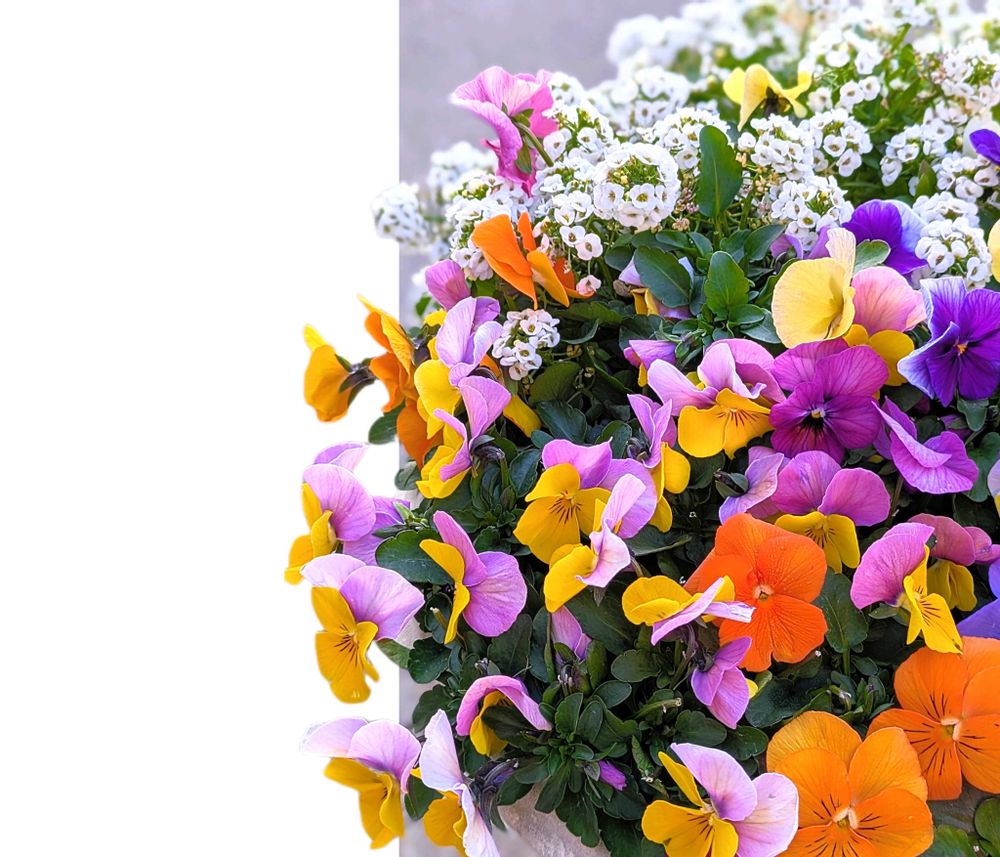 色とりどりのビオラさんたちに、アリッサム
