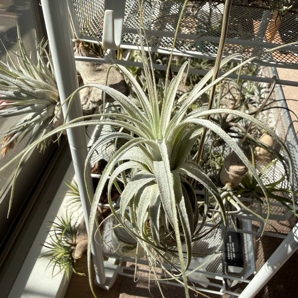 チランジアなどの成長ログ 2025/5/7開始 フォローいただく方が増えて嬉しいです フォローバックいたします 素人栽培、写真うまく撮れない イオナンタとディグエティが好き まとめて書いているので、連投が鬱陶しくならないようにたいてい投稿してから数日後に公開してます 環境:成長期はベランダ、それ以外は室内で管理(ベランダは曇り2000-直射40000lx程度) ソーキングしない派 蒸れなければ水は毎日ミスティング 液肥は硝酸カルシウムのやつ、週一 活力剤も液肥とは別に週一 堆肥も月一あげてるので株の黒汚れはそれ