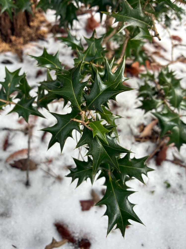 4️⃣ 山のヒイラギ 積雪にもめげずに🌿❄️