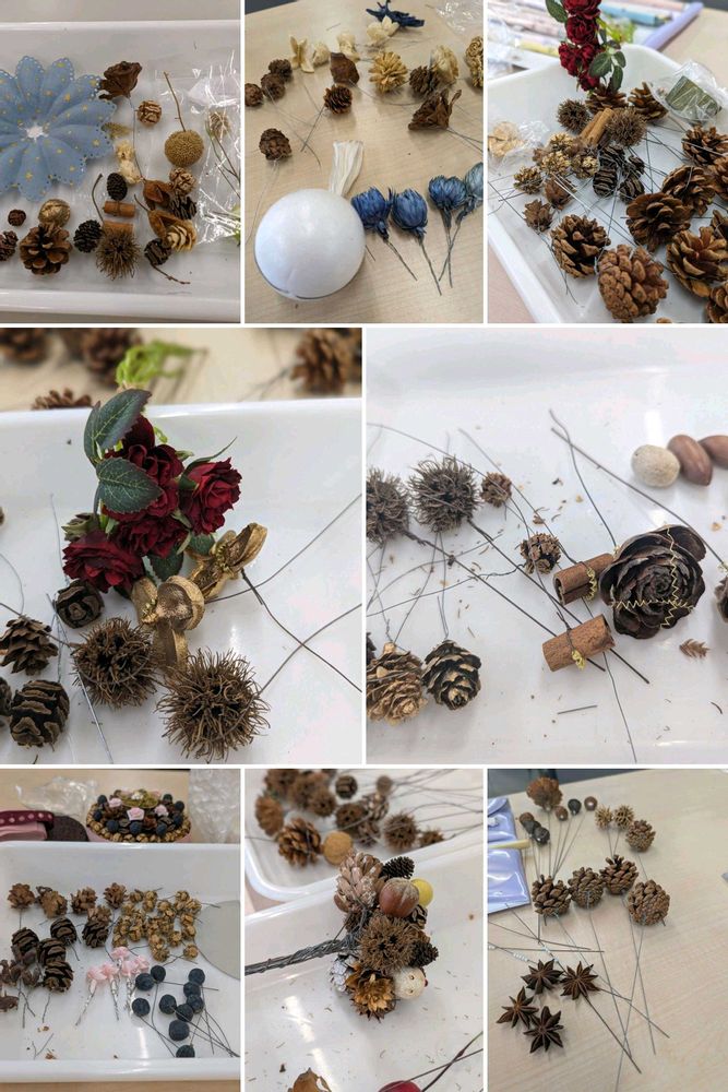 Googleフォトが「似ている写真や動画」と題してコラージュしてくれました🍀😊✨2021年〜2026年❦トロッケンクランツの講座で木の実にワイヤーをかけて、作品を作りました.•*¨*•.¸¸♬
