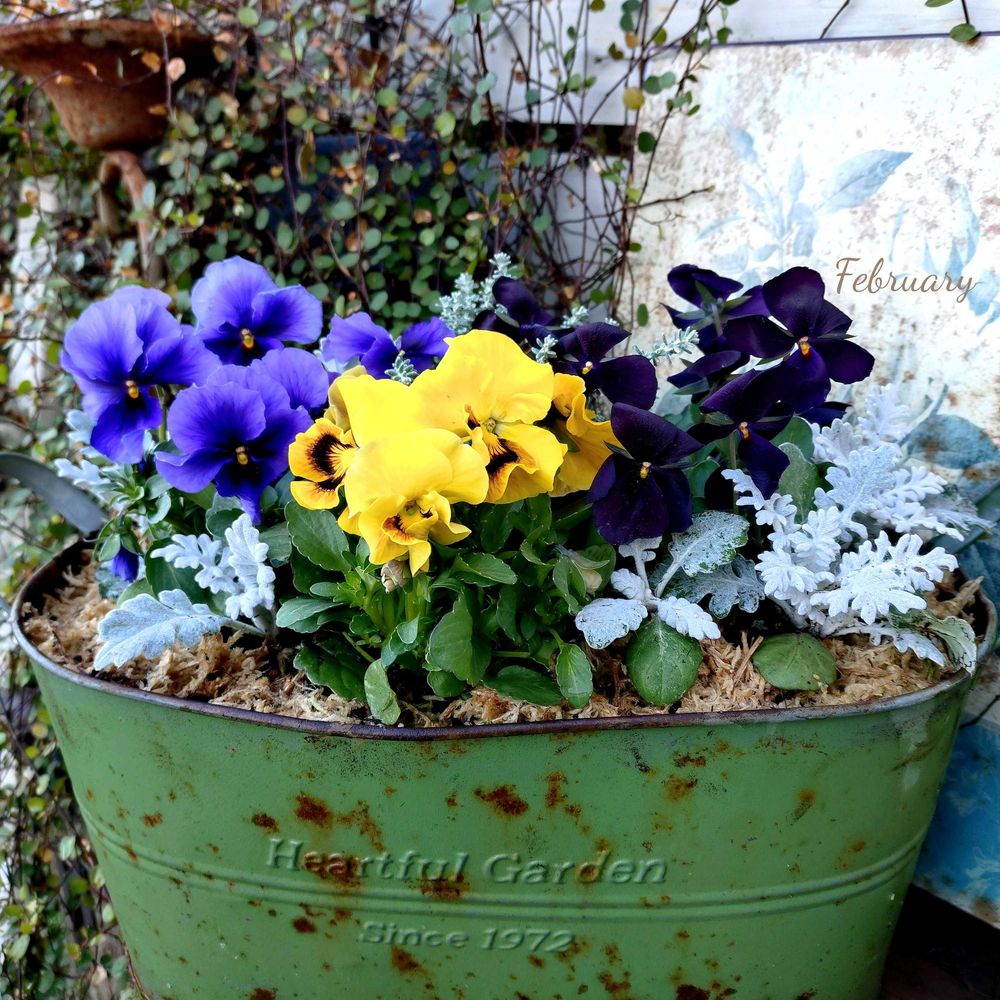お気に入りのサビサビブリキに寄せ植えをしてみました☘️