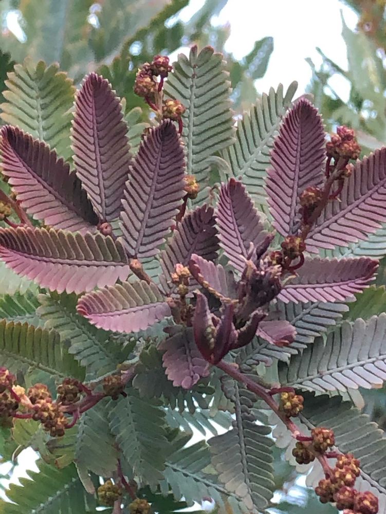 ② 地植えのギンヨウアカシア プルプレア 葉っぱの先端が、シックな色💜