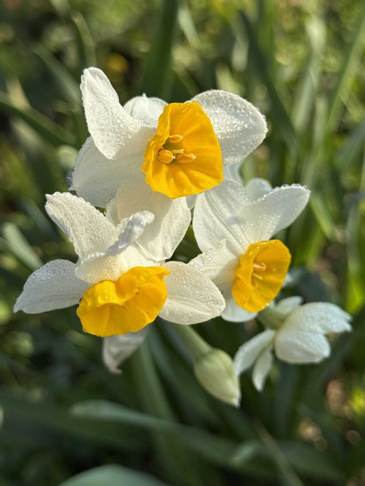 Narcissus tazetta/Narcissus. Amaryllidaceae. Asparagales. Liliopsida. Tracheophyta Commonly called/ Bunch-flowered daffoodil. Paper white Native to/the Mediterranean region *Europe/Spain. France. Italy Africa/Egypt. Libya. Molocco Asia/Turkey. Israel Symbolism/Good fortune. Joy *Genus of sbout 50 species of bulbous perennials *Small-flowers cultivars produce up to 20 flowers per stem. *They have thick stems, wide leaves, amd small coronas. *Flowering from late autummn ~ PD(Plant Diameter)3in (8cm) *It was spread by Roman traders and later, around 1,000 years ago. Photographed 1/31 10:31am 2026 Posted 2/2(Monday) 11:50am 2026