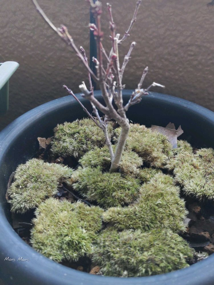 イロハモミジの鉢に敷いたホソバオキナゴケ モコモコ元気です🥰