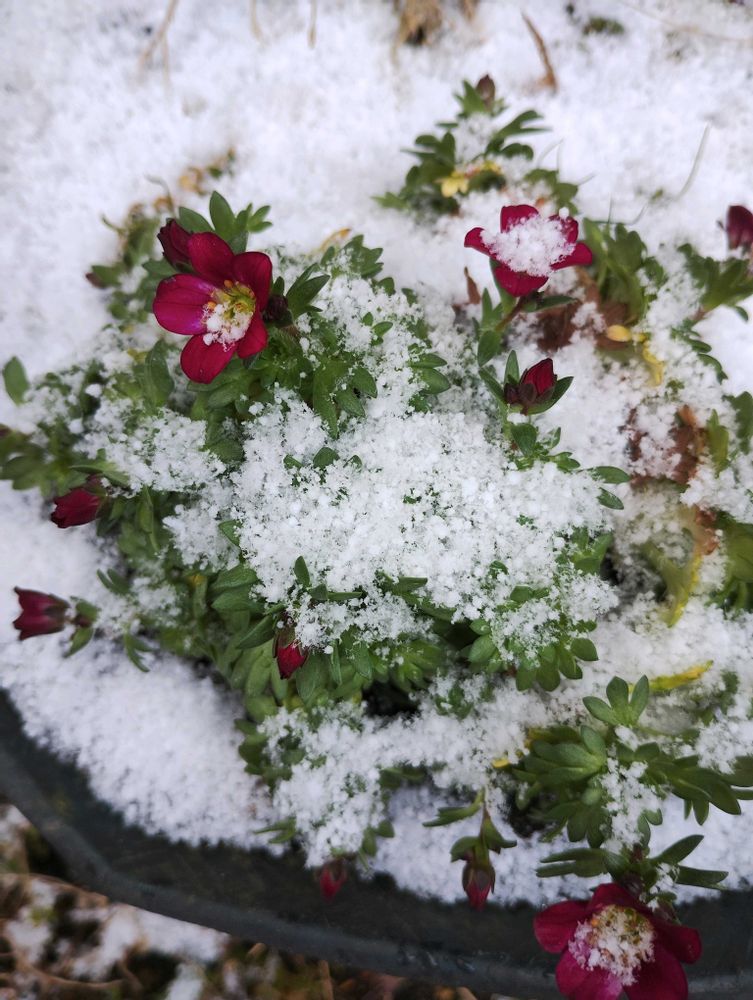 雪を被ったクモマグサ、とっても可愛いです🥰