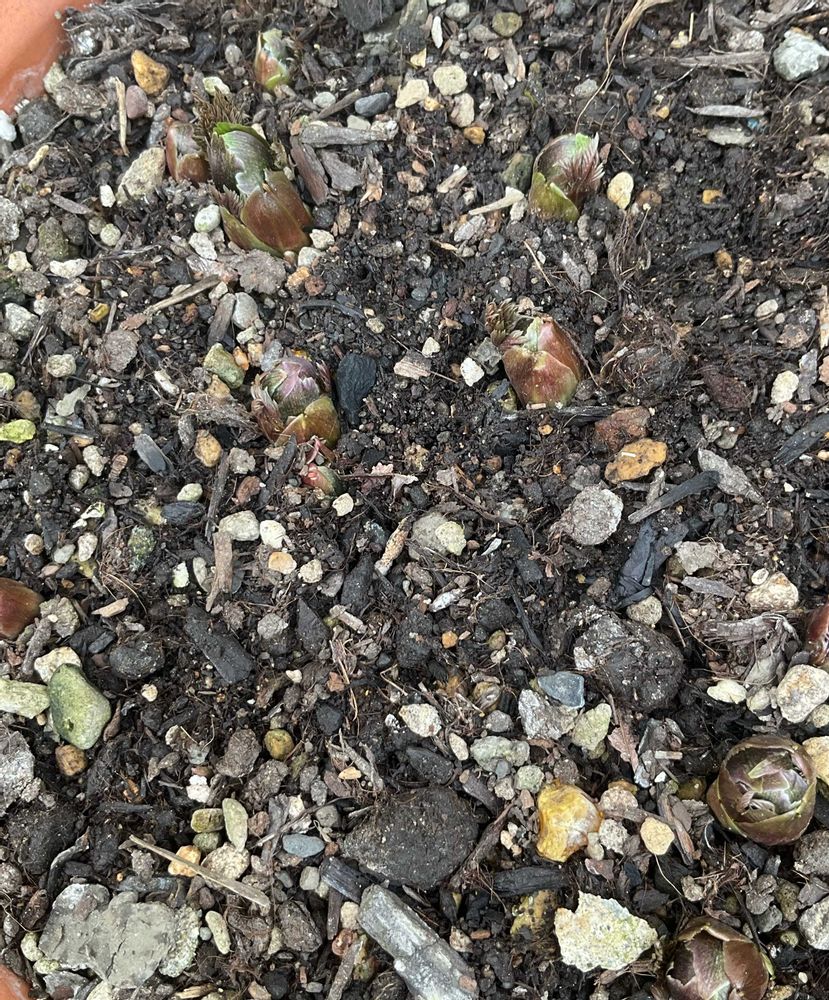 我が家の鉢も それらしき物が土をもたげている様で 割り箸でそーっと土を避けたら😱…慌てて又 土を掛けました(笑)