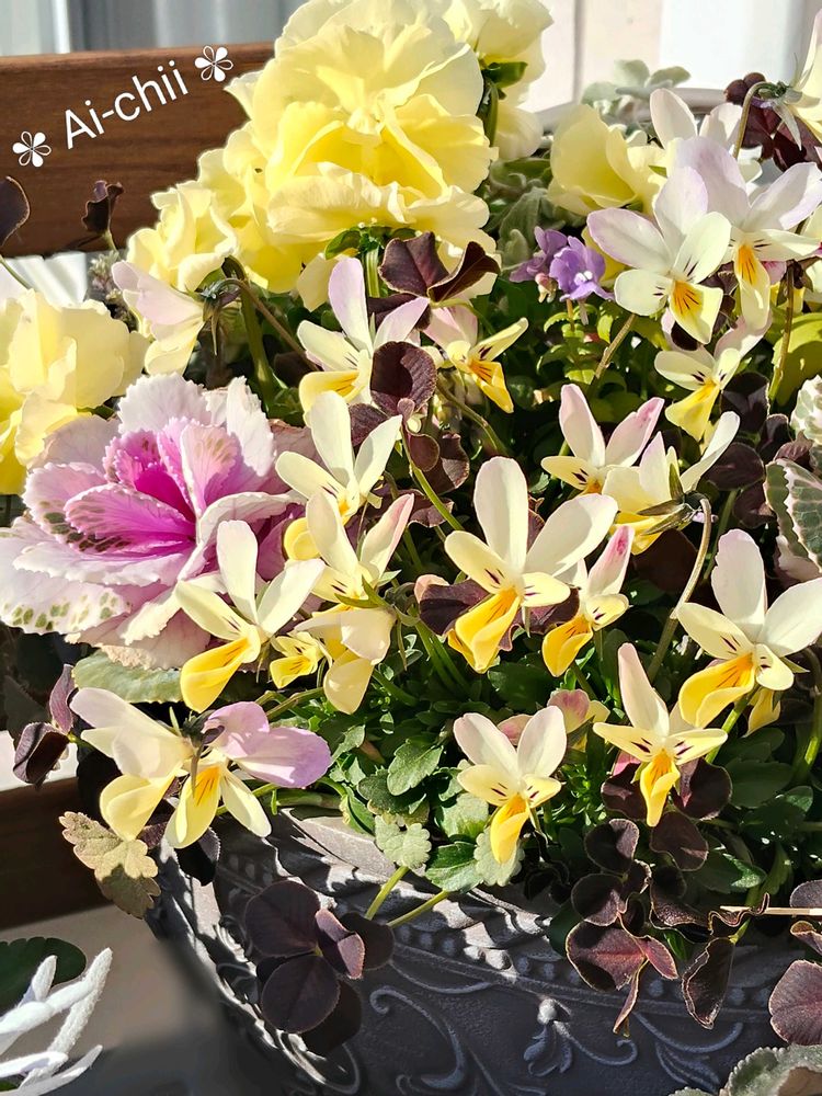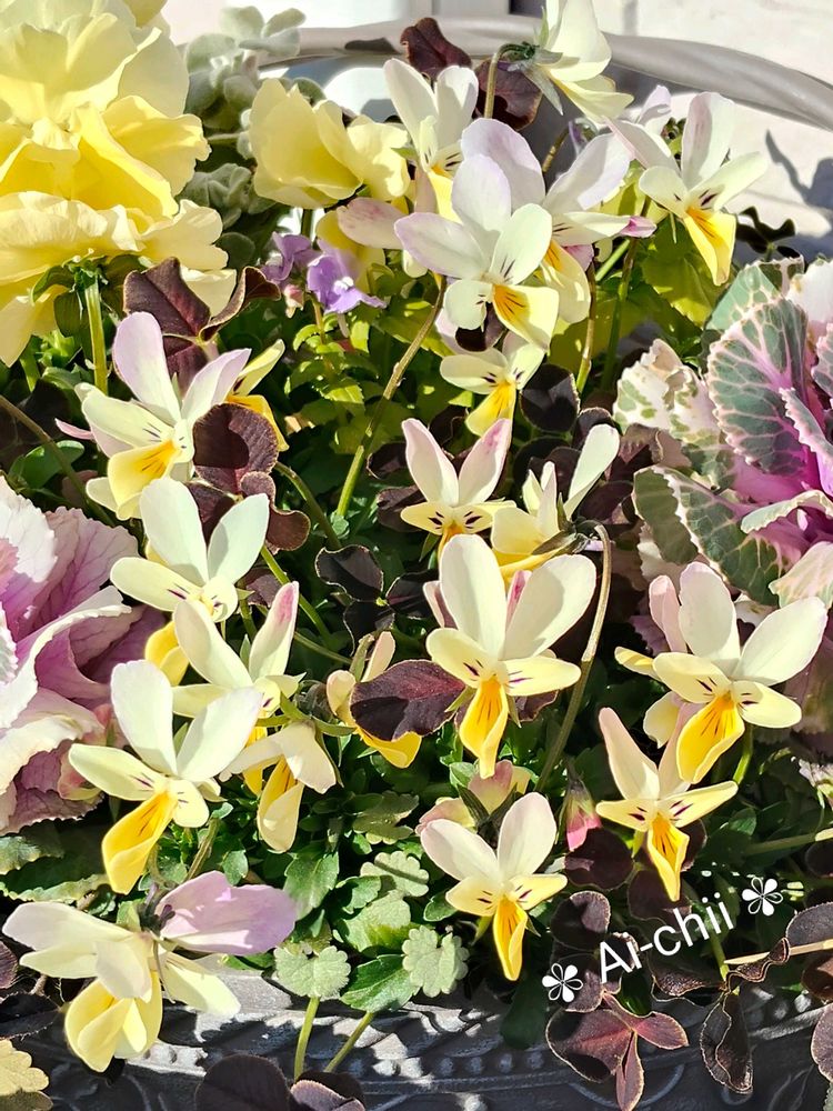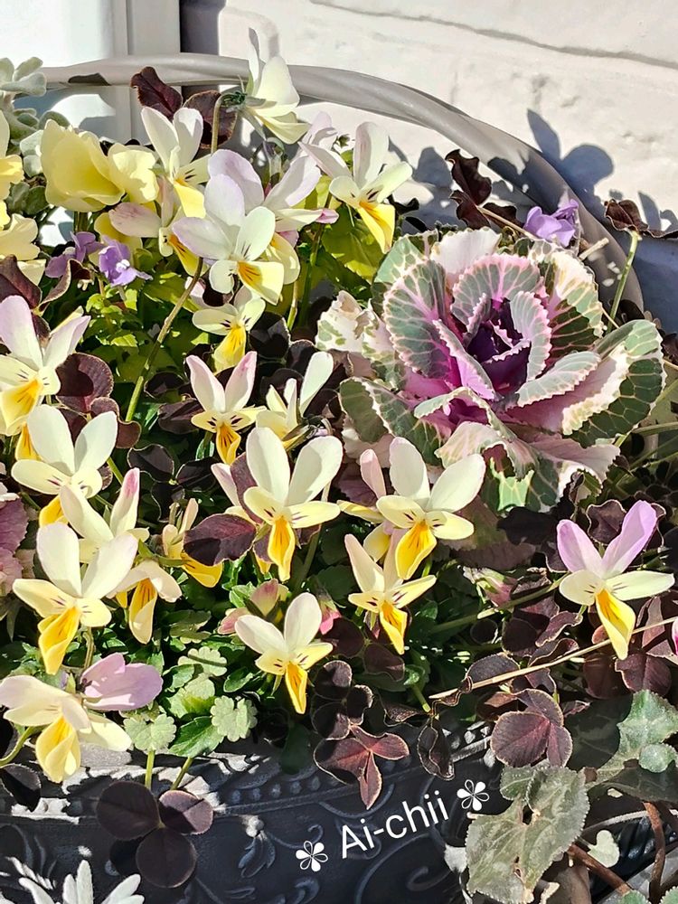 タヌキもかわいいけど、この色のバニーイヤーズビオラさん、かわいいわ🤗