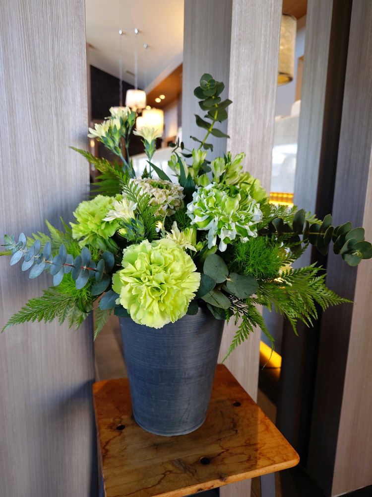 ライムグリーンのカーネーションとラナンキュラスが、素敵です💚🤍