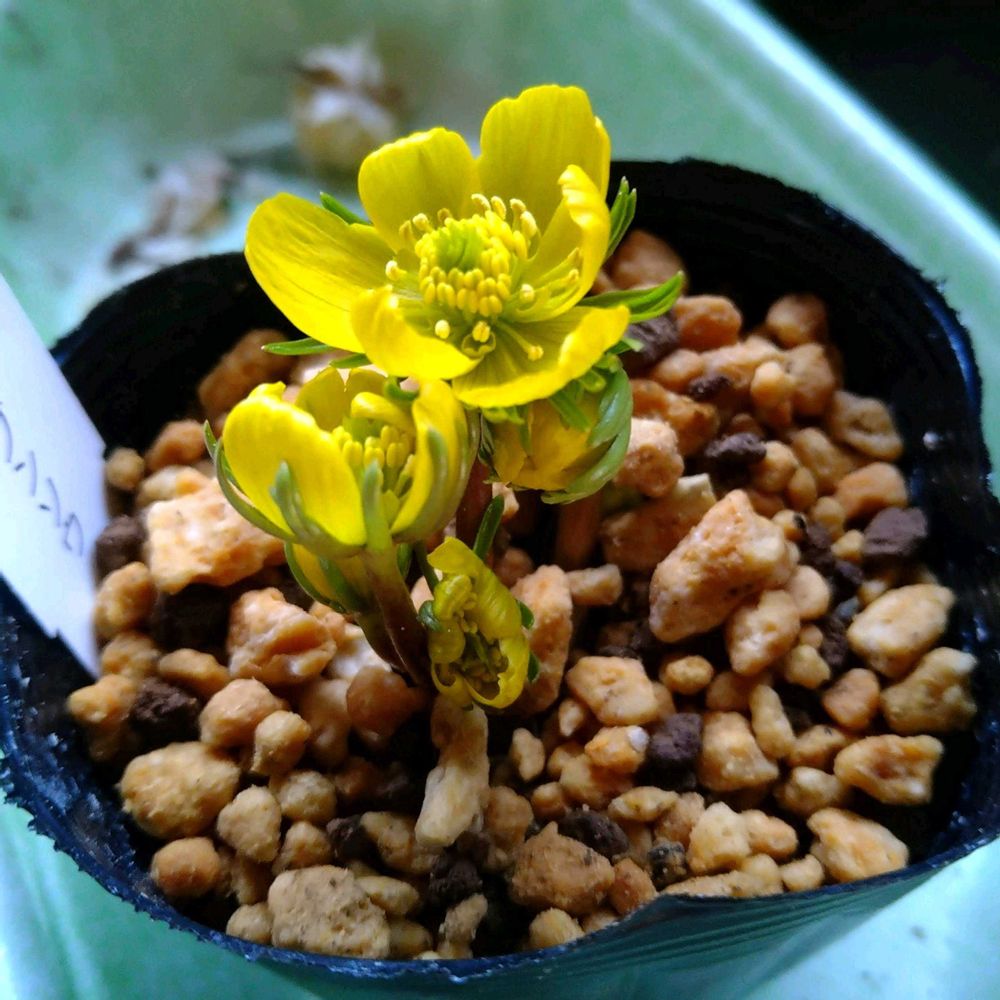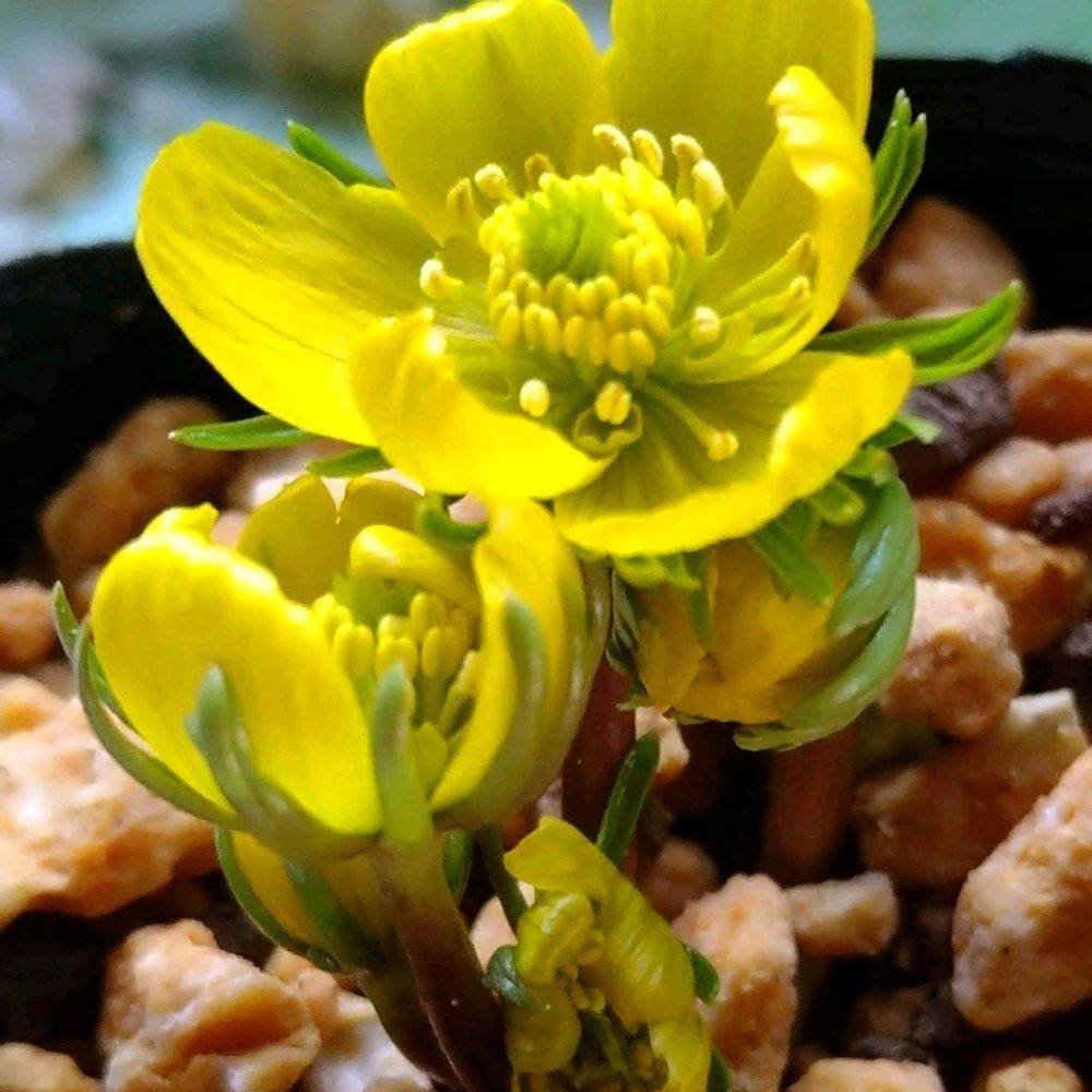 セツブンソウと同じセツブンソウ属の仲間、日本では主にヨーロッパの交配種が出回っている