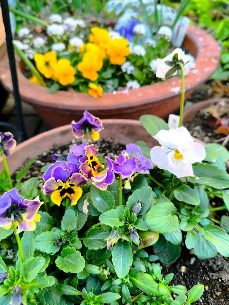 4枚目はおじさん顔をした夢みるパンジーと白のシエルブリエ🤍