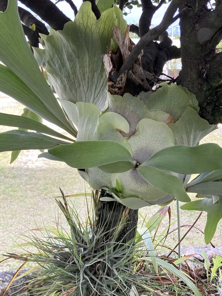5️⃣低めの庭木に着生してていくつも重なりあってて💦子株もいっぱい、もうそのまま見守ります!😅
