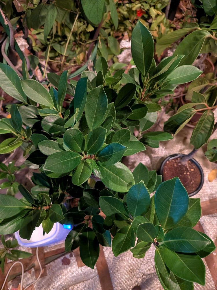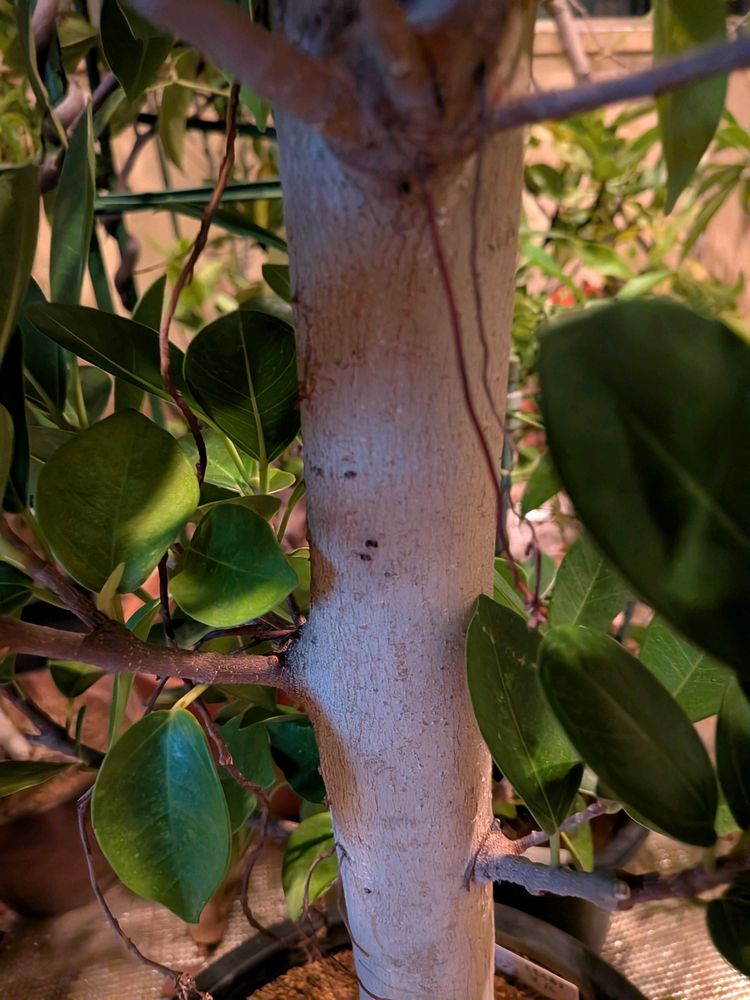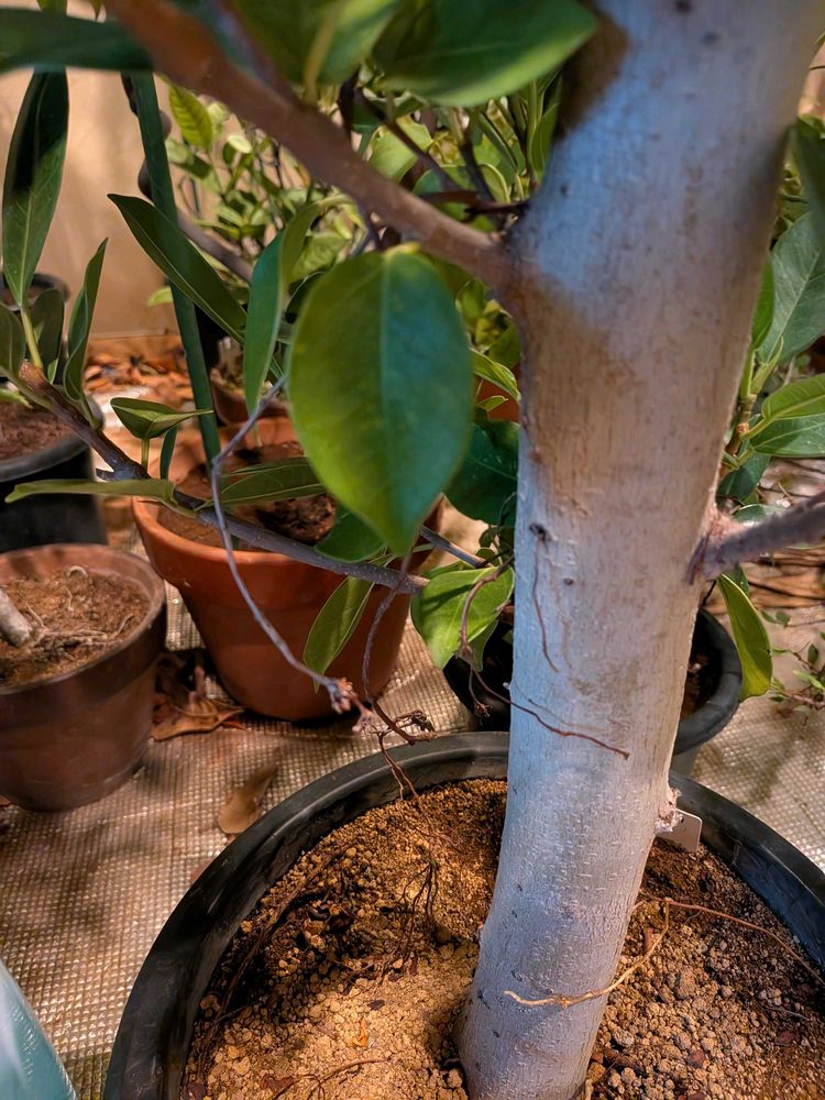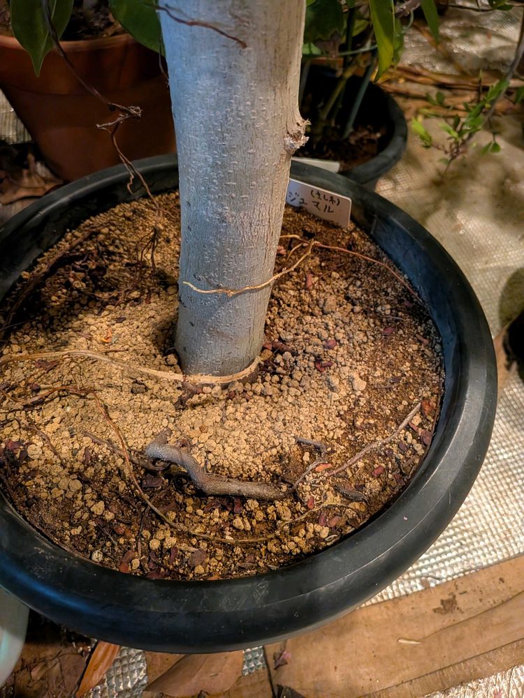 数年前に沖縄から太い枝を頼み挿し木したガジュマルですが、本来は挿し木だと気根が出にくいと言われているようですが、いい感じに気根が増え伸びています。しかし冬は加湿器まで炊いて気温も光もあるのでいい環境なのでしょう。そしてホームセンターに販売されているのは東南アジアで人工的に幹を畑に植えて太らせているにんじんガジュマルと呼ばれる物のようです!