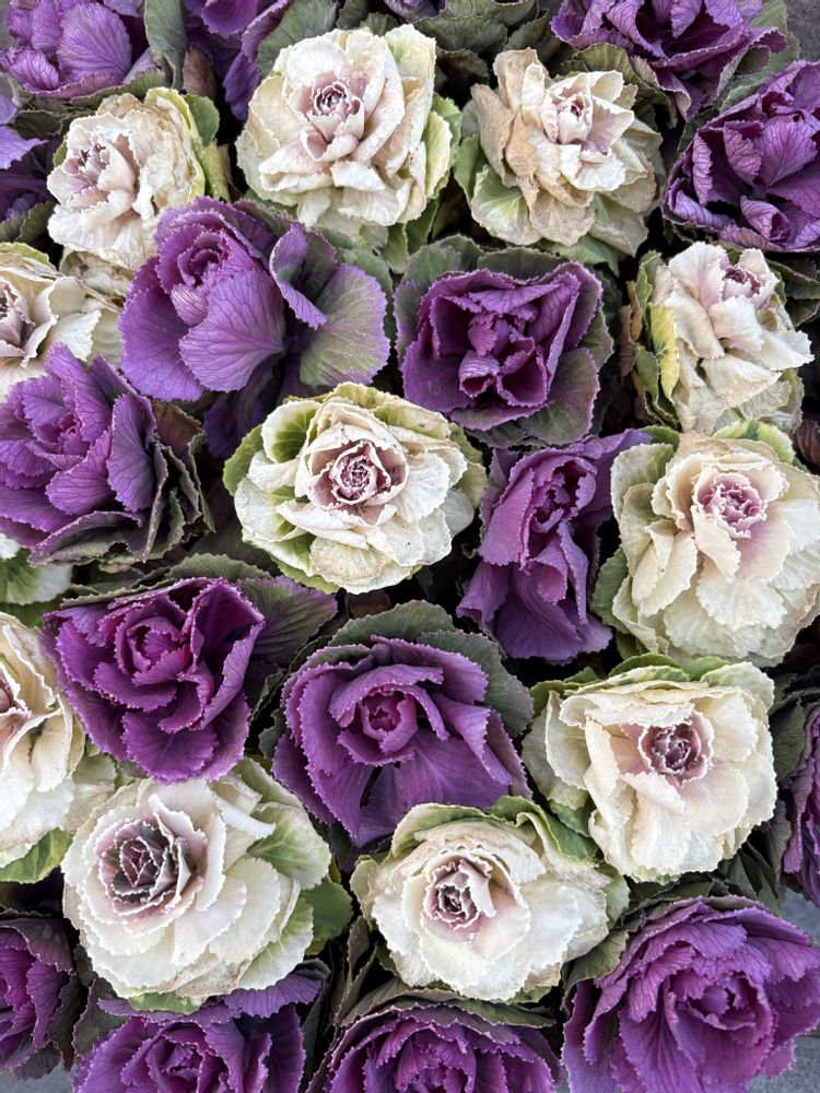葉牡丹の寄せ植えです。💜🤍💜とっても素敵です〜!🥰💜🤍💜😍