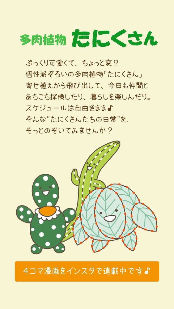 🪴多肉キャラクター 「たにくさん」育てています イラレで描く“ゆるかわいい多肉の世界” 🎥4コマ漫画リールはじめました 🌱通販で、たにくさんのグッズも販売しています グリーンスナップさんでは、たにくさんの4コマ漫画や私の持っている多肉植物の写真をアップしていきたいと思います。 多肉好きさんとつながりたいです。 よろしくお願いいたします。