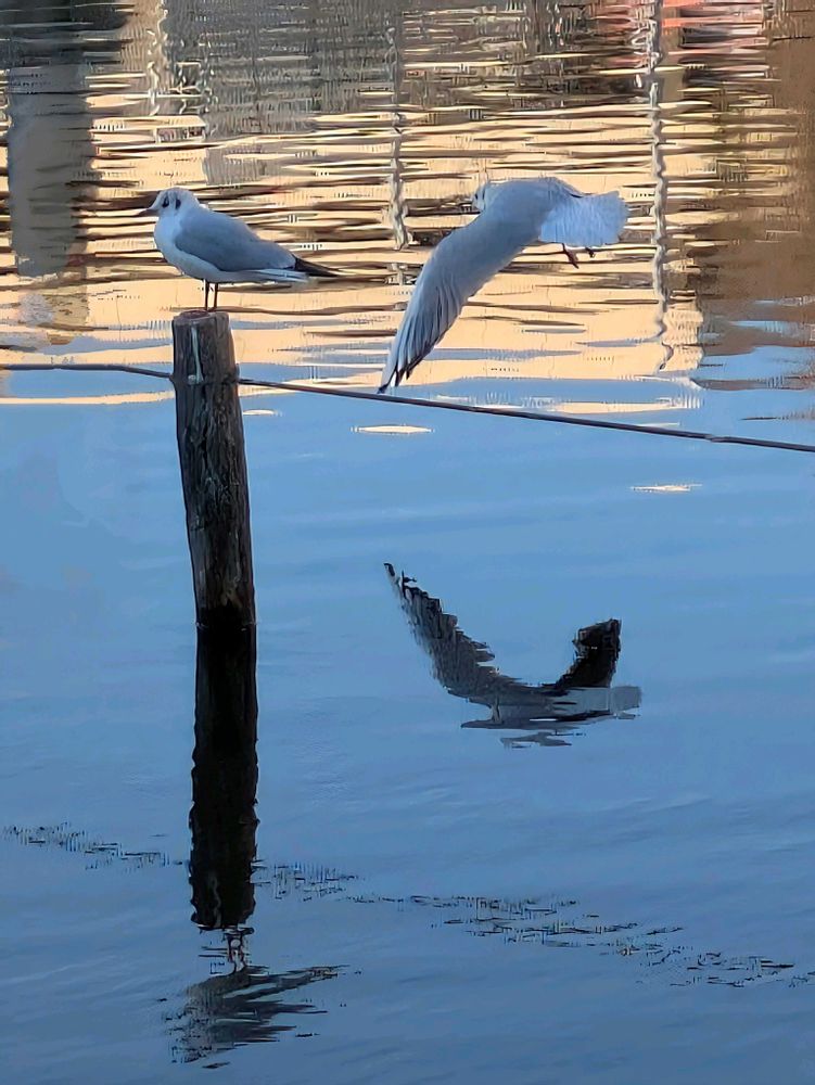 飛んでいるユリカモメには構わないマイペースなユリカモメ😁