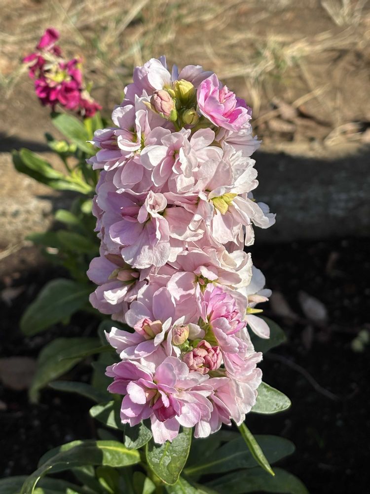 ストック花壇でよく見かけますね。