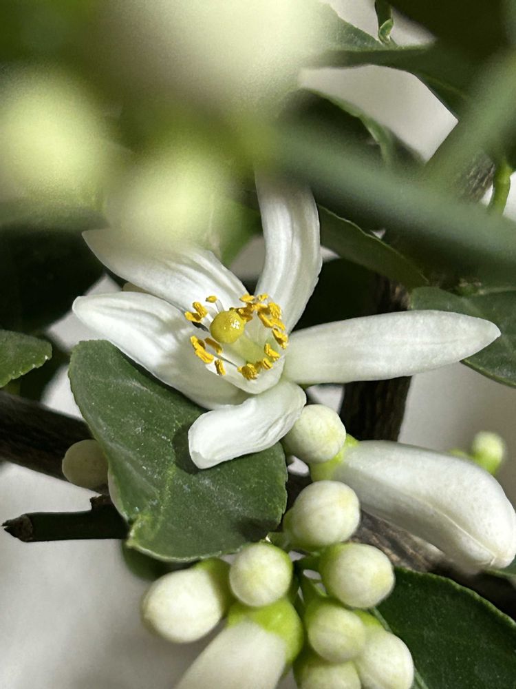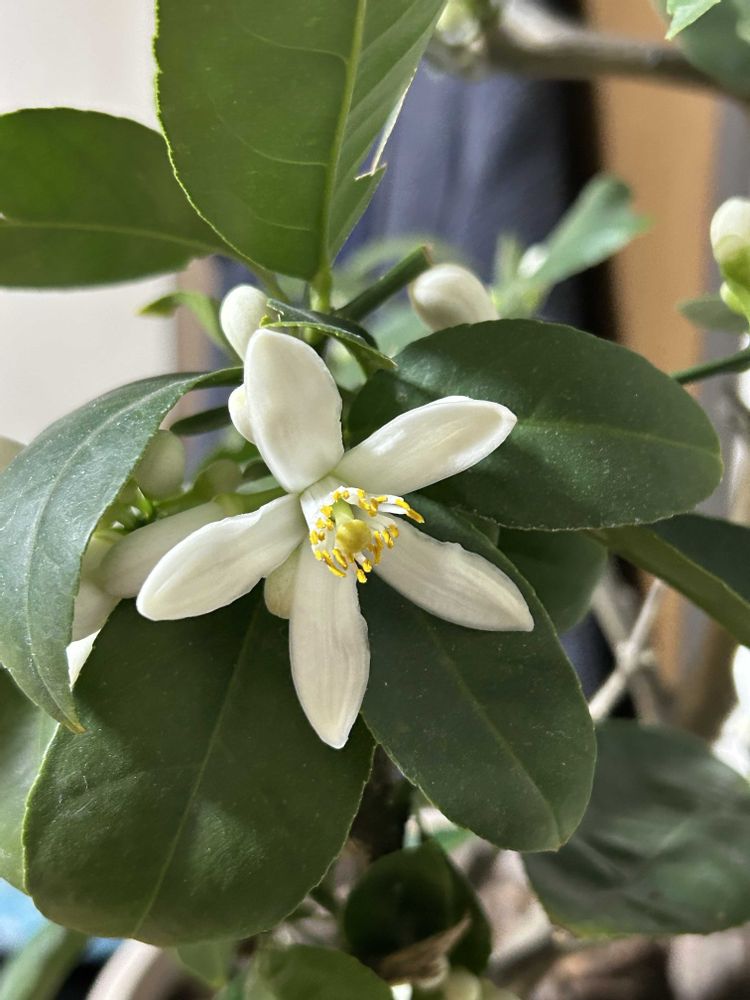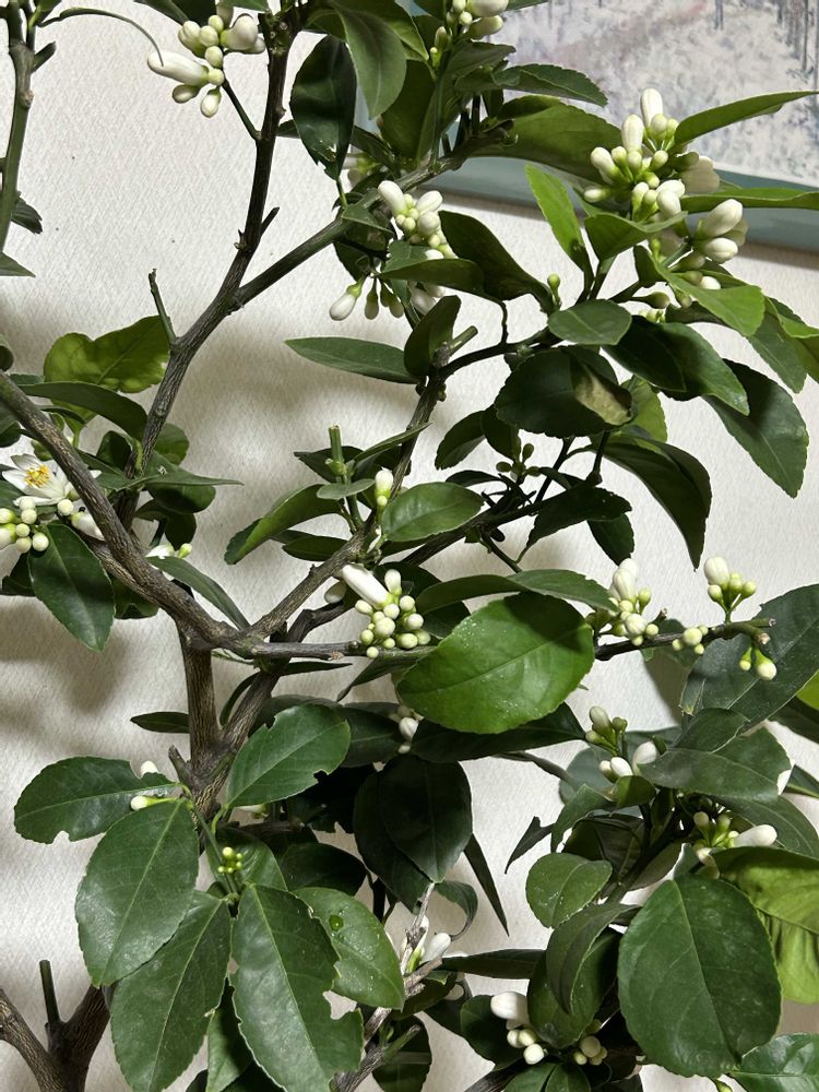 お部屋が暖かくレモン🍋の花が咲いて来ました💛沢山の蕾がついていますが咲かせてしまっていいのかな?