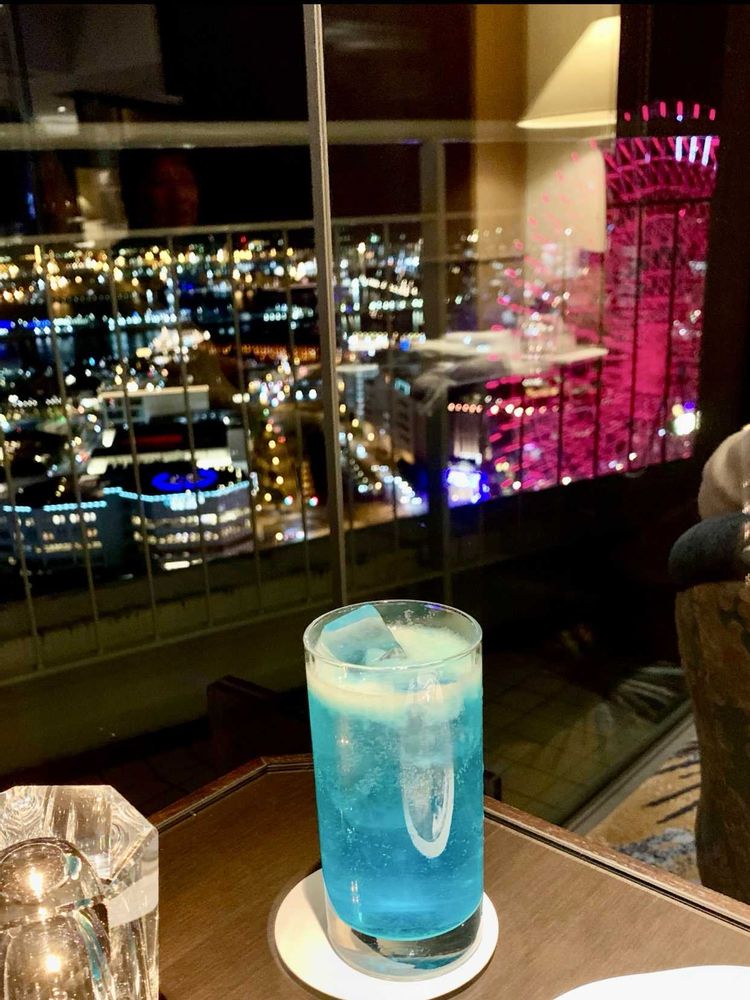 ⑤ラウンジでブルーのカクテルを