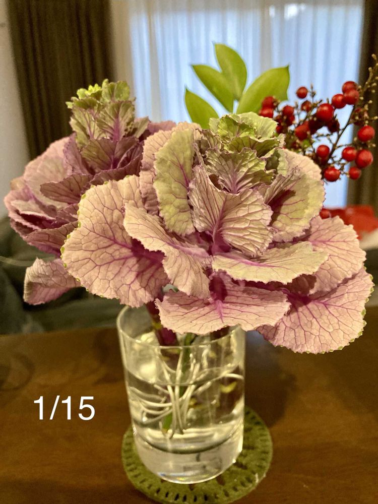 お正月に松や南天と一緒に生けていた葉牡丹