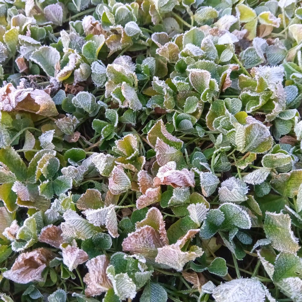 カサバルピナスやクローバーにも真っ白な霜の結晶🤍🤍