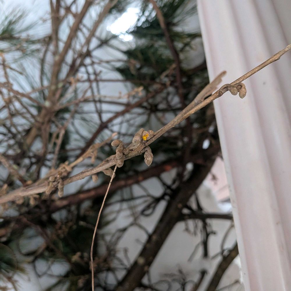 マルバマンサクの枝は冬芽と蕾…