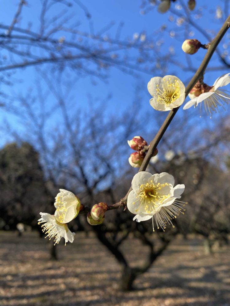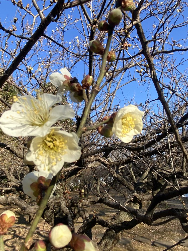 カラカラお天気で、お花が少し小さめでしたが、梅林の梅が綻んできていました〜