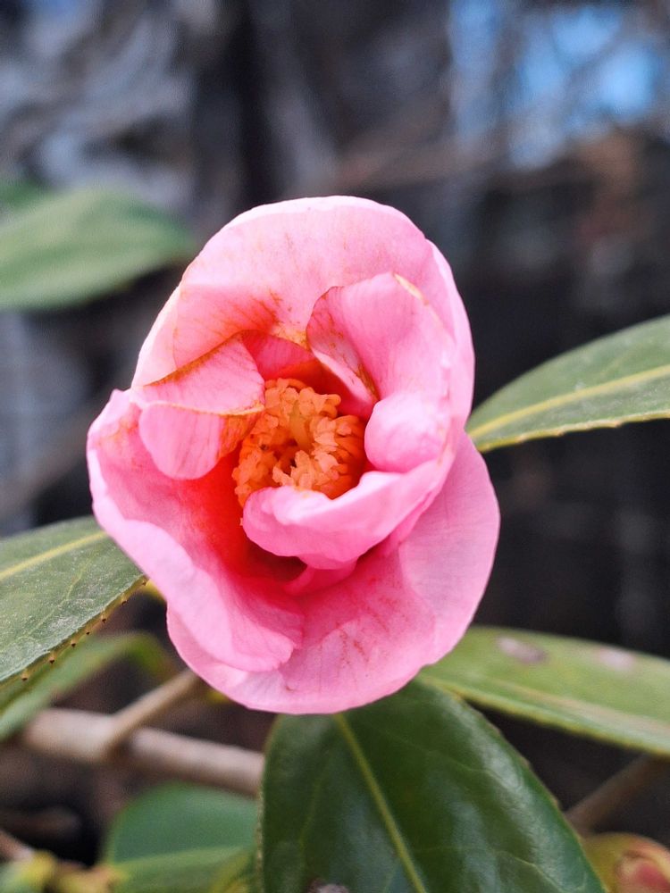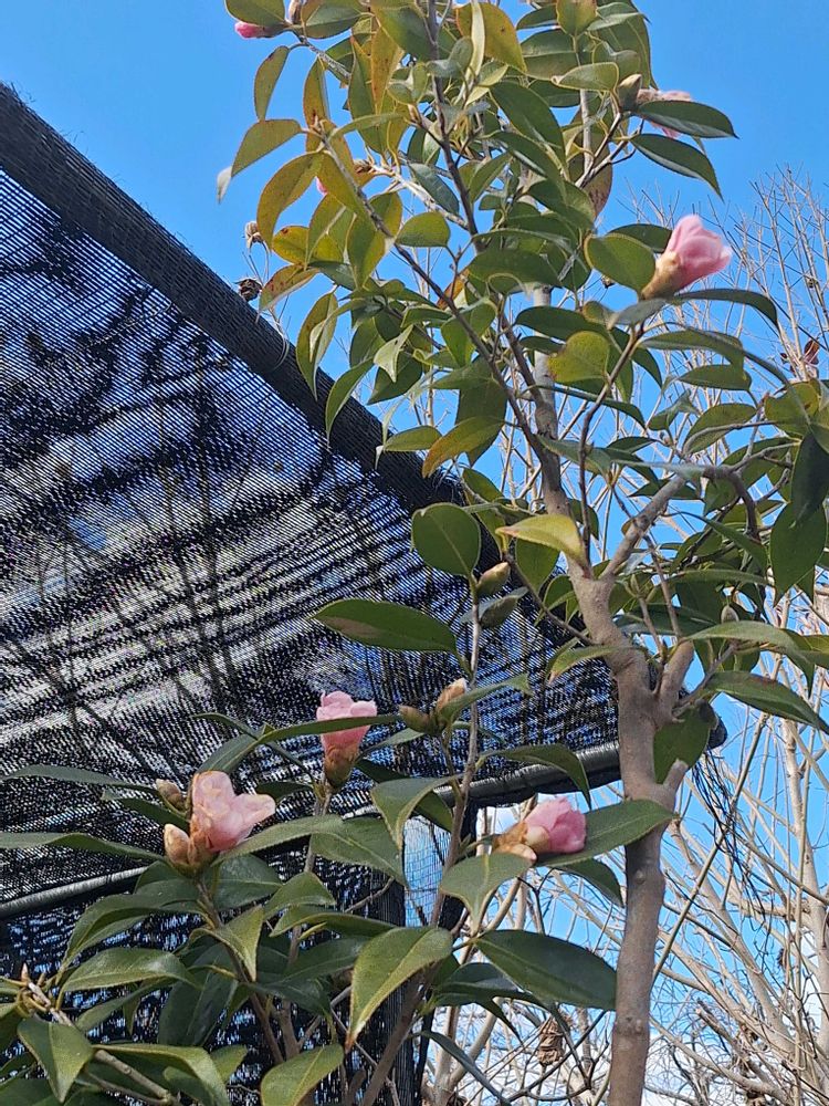 ピンク色のツバキが、咲き始めました。他の白椿やワビスケよりは、遅いです。