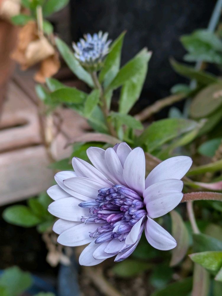 オステオスペルマムブルースティール、寒さに強いんですね。まだ咲いています☺️💞