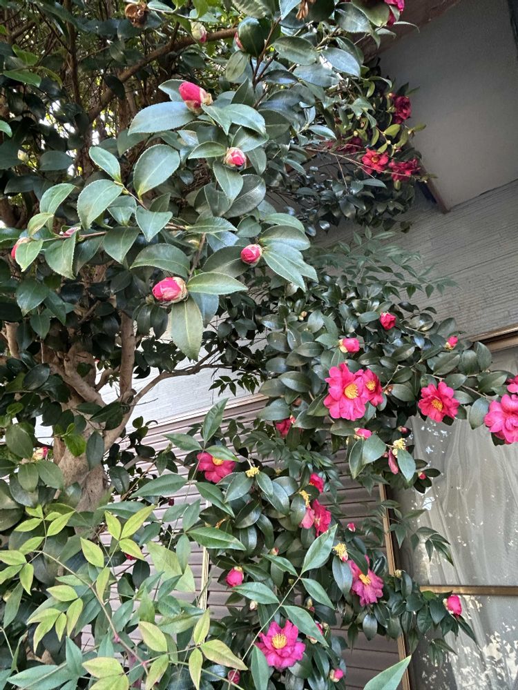 お隣りの山茶花が綺麗に咲いてます‼️