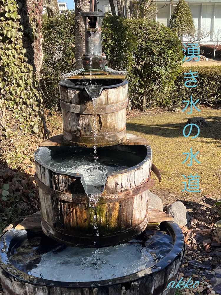 ユーカリの葉や、ガーベラの花、入り口の水道