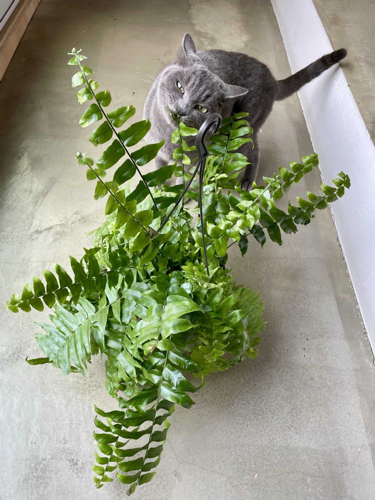 🌿と🪴をメインに🐈⬛🎞️📚🍺 チラチラ登場するグレイの猫は洋猫風ですがワイルドな環境から保護された元野良猫🐈⬛ 葉っぱ齧っちゃうこの子のお陰でハンギングは得意