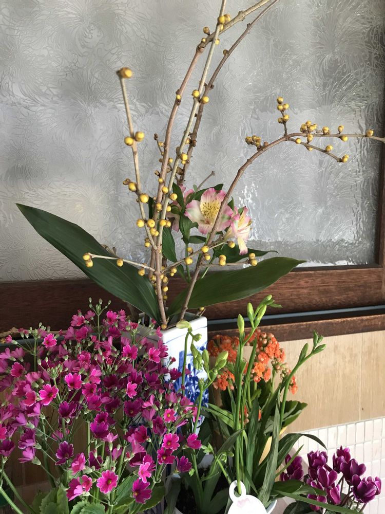 昨日の蝋梅に、マラコイテ”ス、フリージア、カランコエ、シクラメン、どのお花🌼🌸も元気なので仲間入り、フリージア二輪ほど散りましたが、蕾が膨らんできました、蝋梅はゆっくり開くのかな〜〜