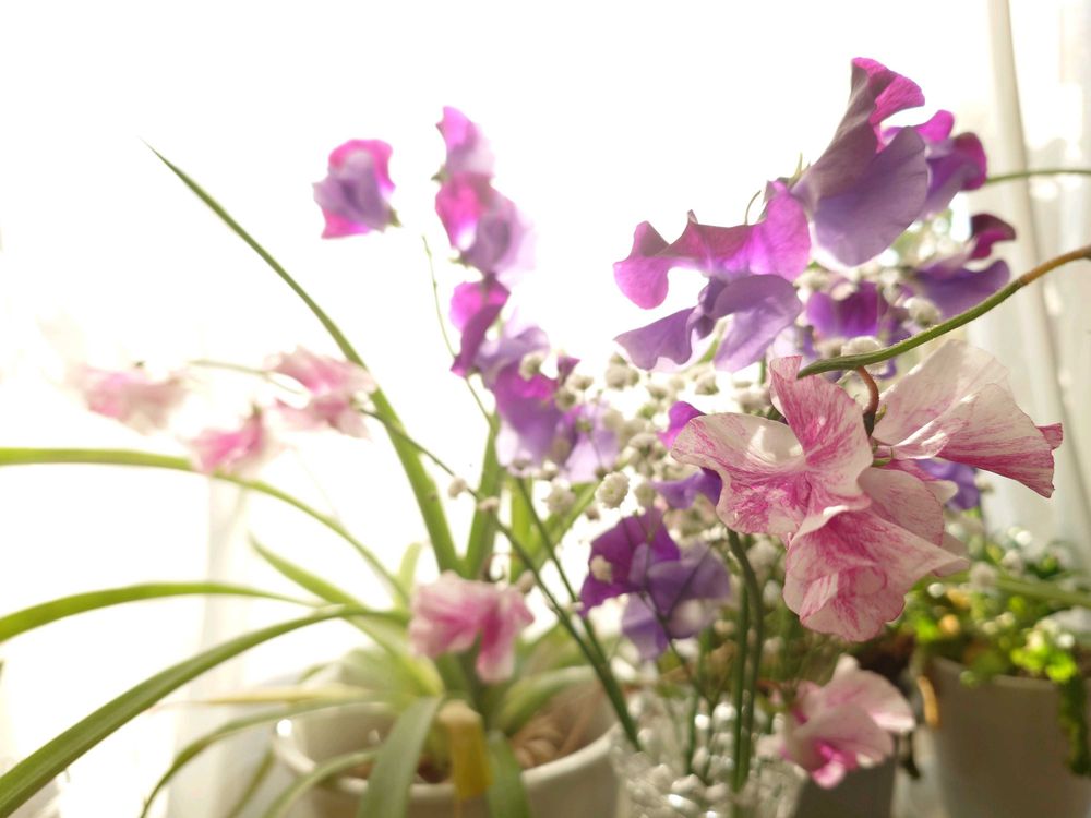 たーぼー *さんのスイートピー,ヒヤシンス,たーぼー*んちの出窓の投稿画像