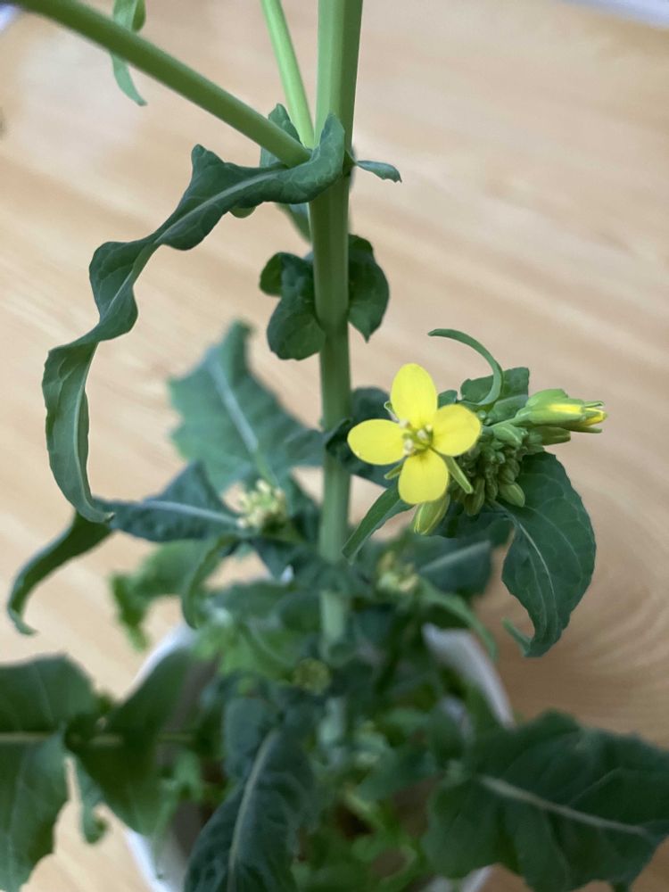 自宅では、カブのお花が開花…カブの上の方をカップで水耕栽培してみました!
