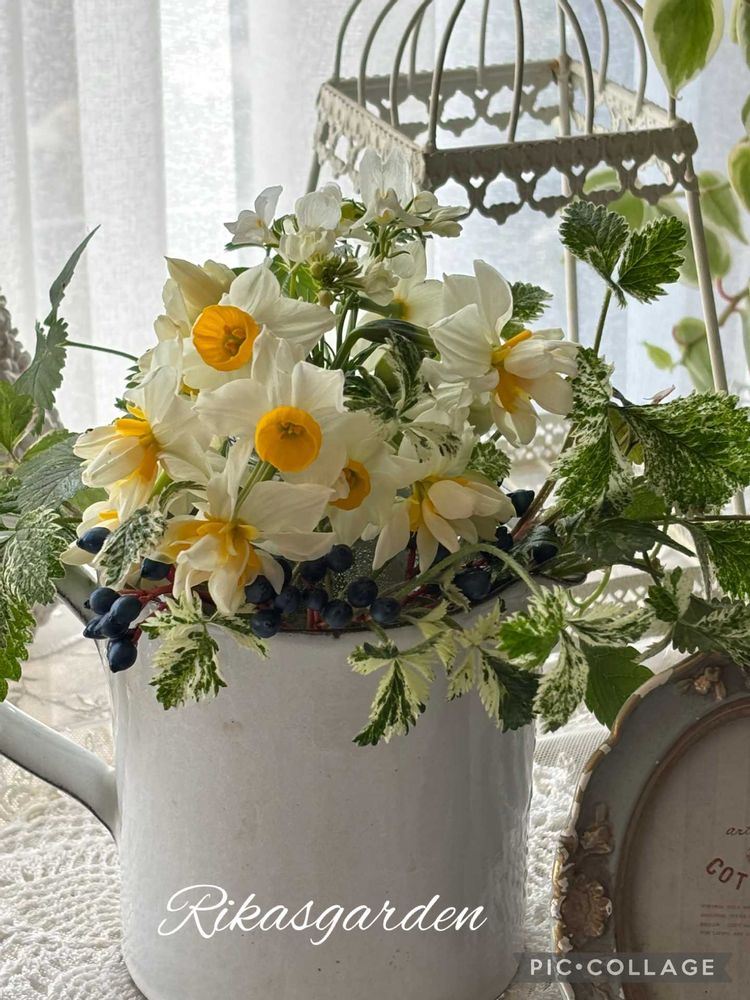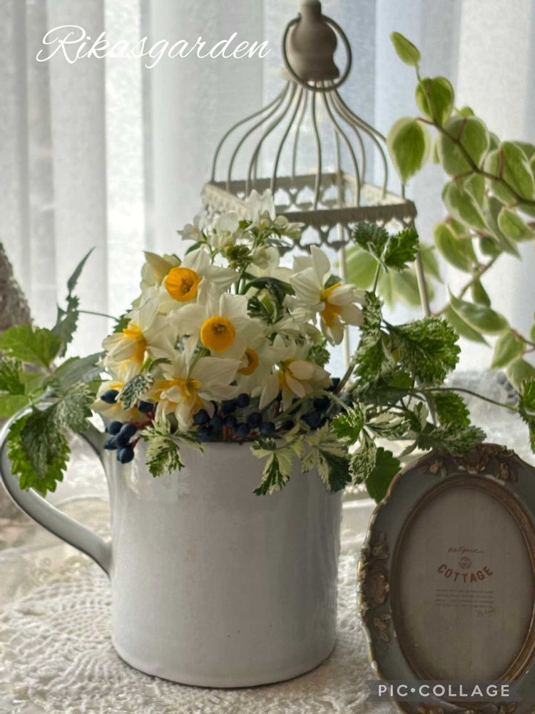 ①実家の庭から水仙をもらってきて、部屋に飾りました。いい香り〜🥰