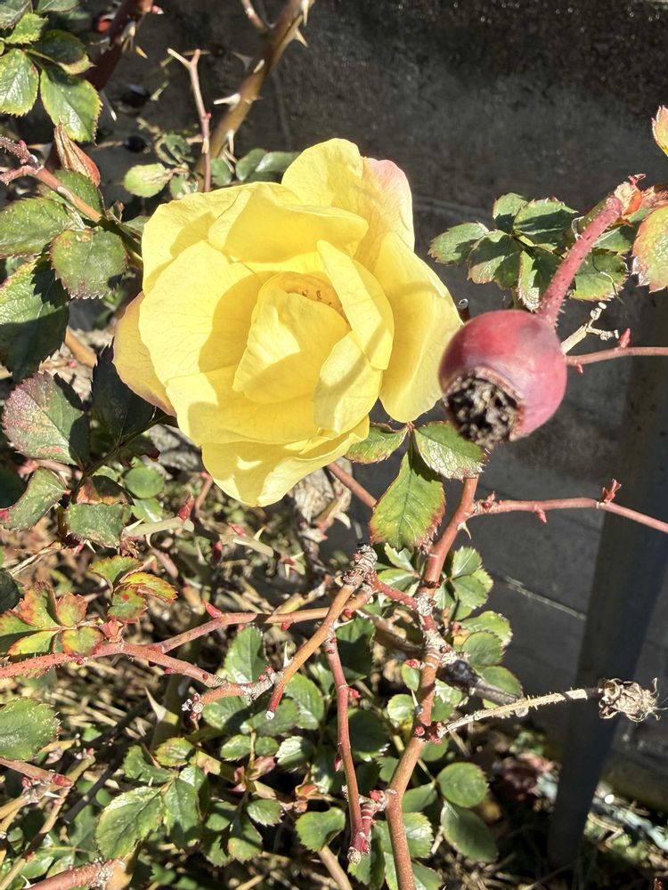 こんばんは♪今日は一日多忙でした😞つるバラが一輪咲いていました💕この色のお花は元気がもらえますね🌼